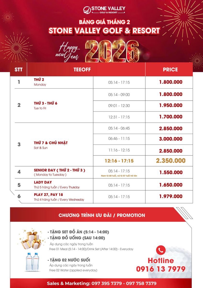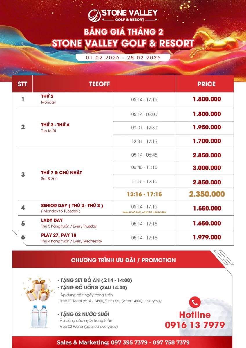 BẢNG GIÁ THÁNG 02/2026 – STONE VALLEY GOLF & RESORT